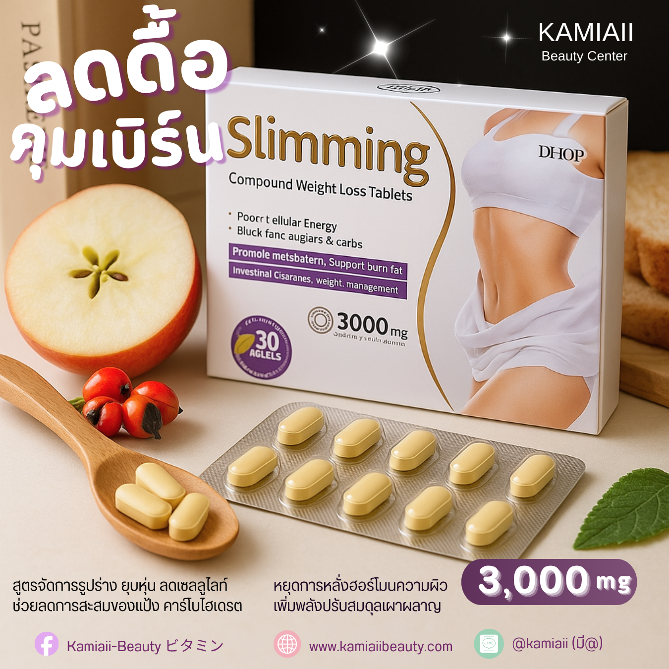 ![[🇺🇸พร้อมส่ง] 𝐃𝐇𝐎𝐏 เม็ดเพียวอเมริกา สูตรปรับบาลานซ์ ดักแป้งมันแคล รีเซทรูปร่างคุมหิวเผาผลาญ ขับถ่ายดี ผิวสดใส ไม่บวมน้ำ - Image 3](https://www.kamiaiibeauty.com/wp-content/uploads/2025/10/DHOP-Slimming-2.png)