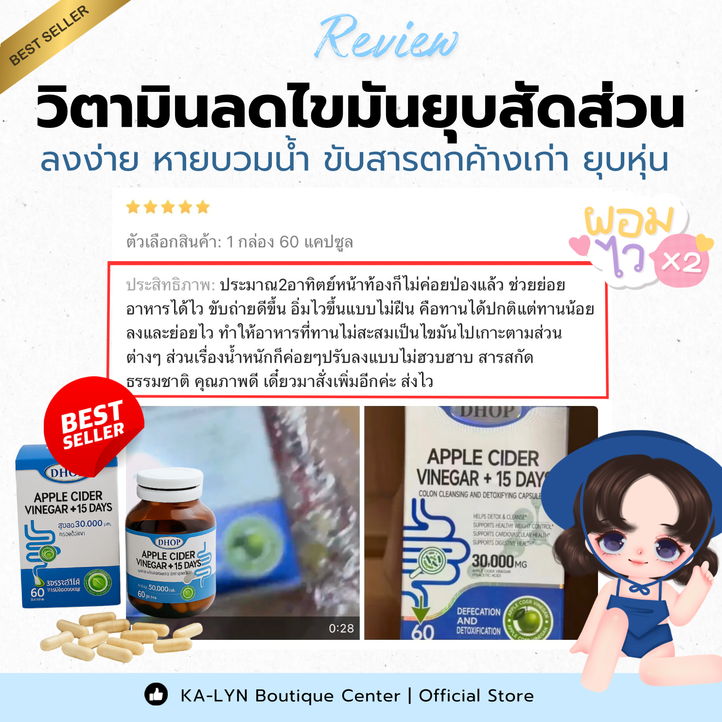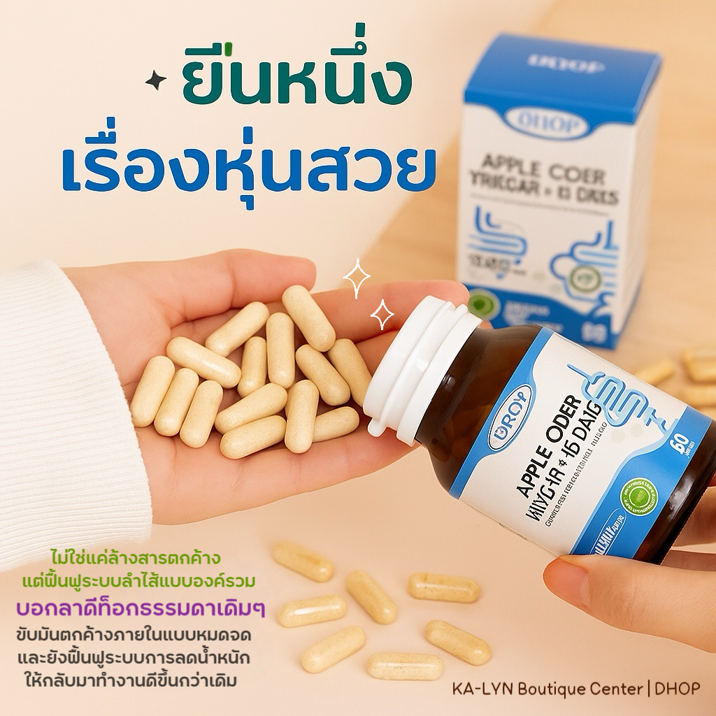 ![[NEW🇹🇭🇺🇸] 𝐃𝐇𝐎𝐏 Apple Cider Vinegar +15Days สูตรเสริมระบบลด ลอกสิ่งตกค้างลำไส้หมดจด ลดอาการดื้อ ขับถ่ายดีไม่ปวดบิด 60แคป - Image 3](https://www.kamiaiibeauty.com/wp-content/uploads/2025/09/รีวิวApple-Cider-Dhop-กระปุกเขียวฟ้าขาว.png)