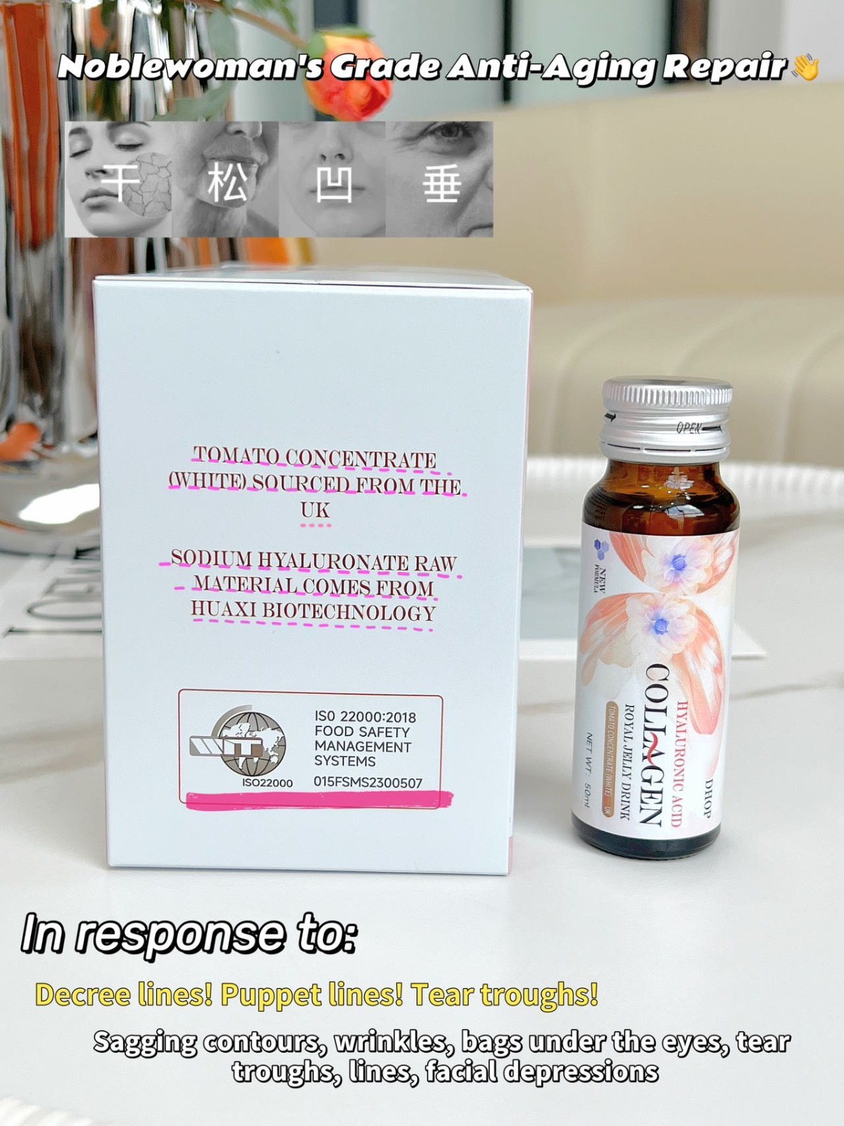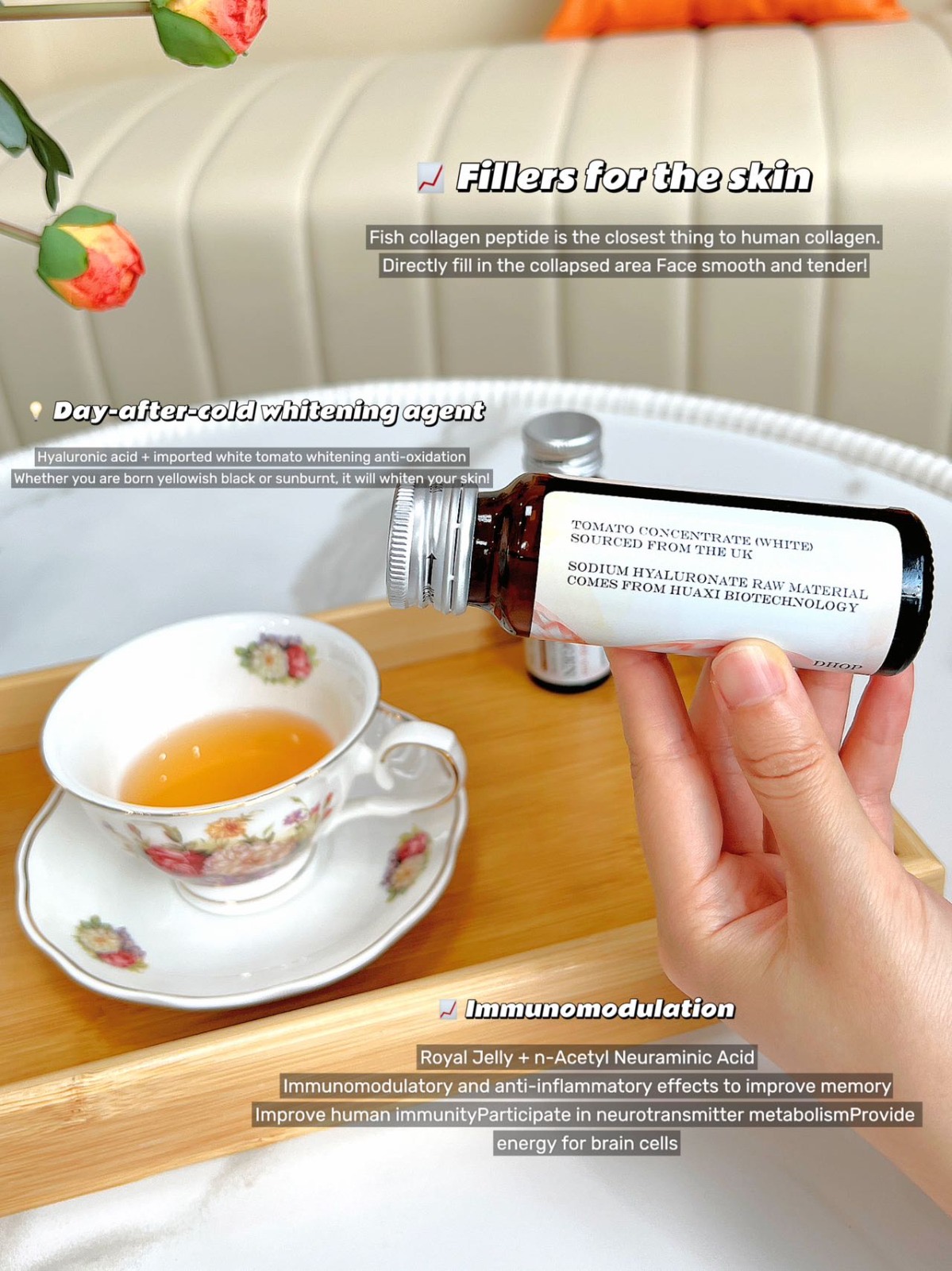 แหล่งวัตถุดิบเด่น: Tomato Concentrate (White) จากประเทศอังกฤษ, Sodium Hyaluronate จาก Huaxi Biotechnology
