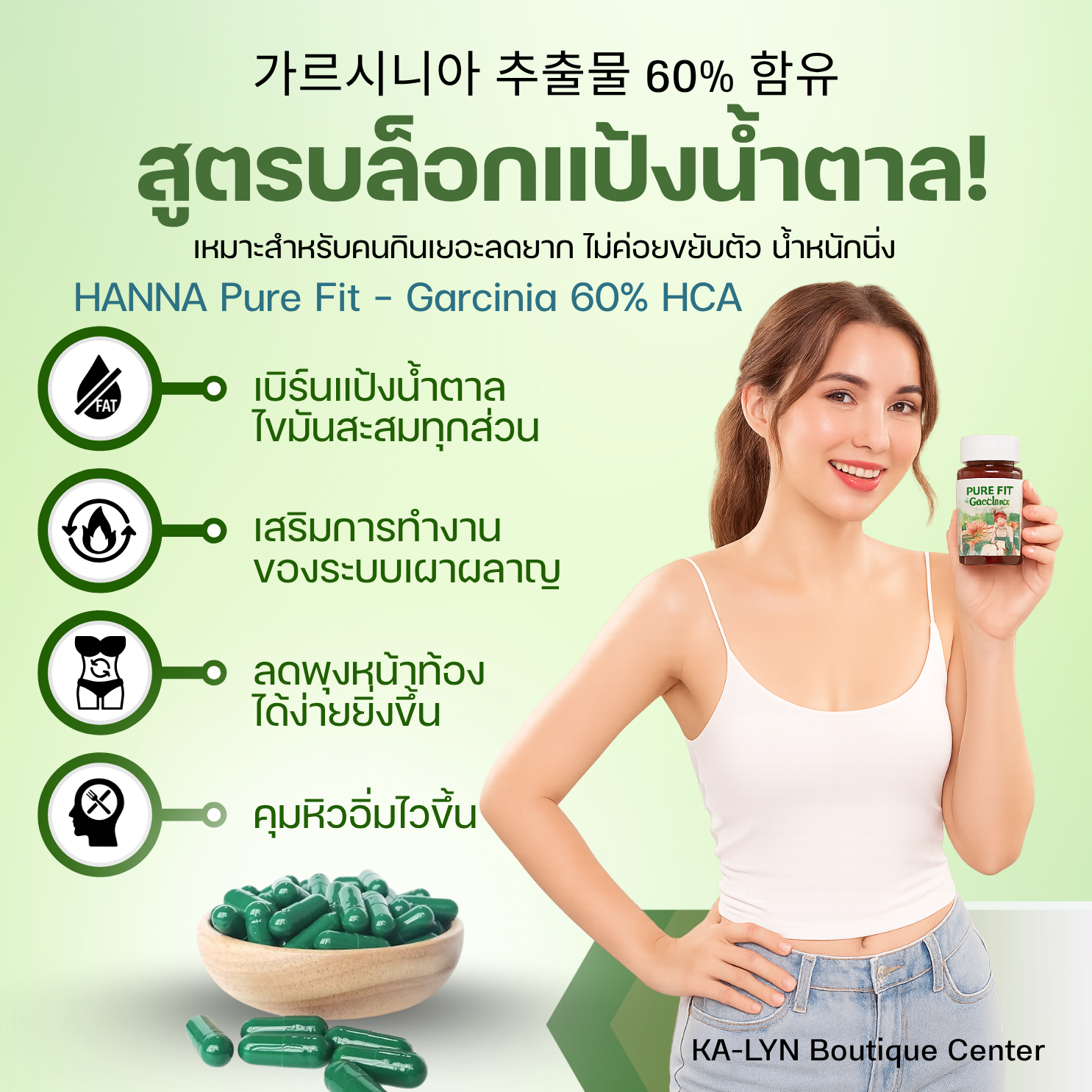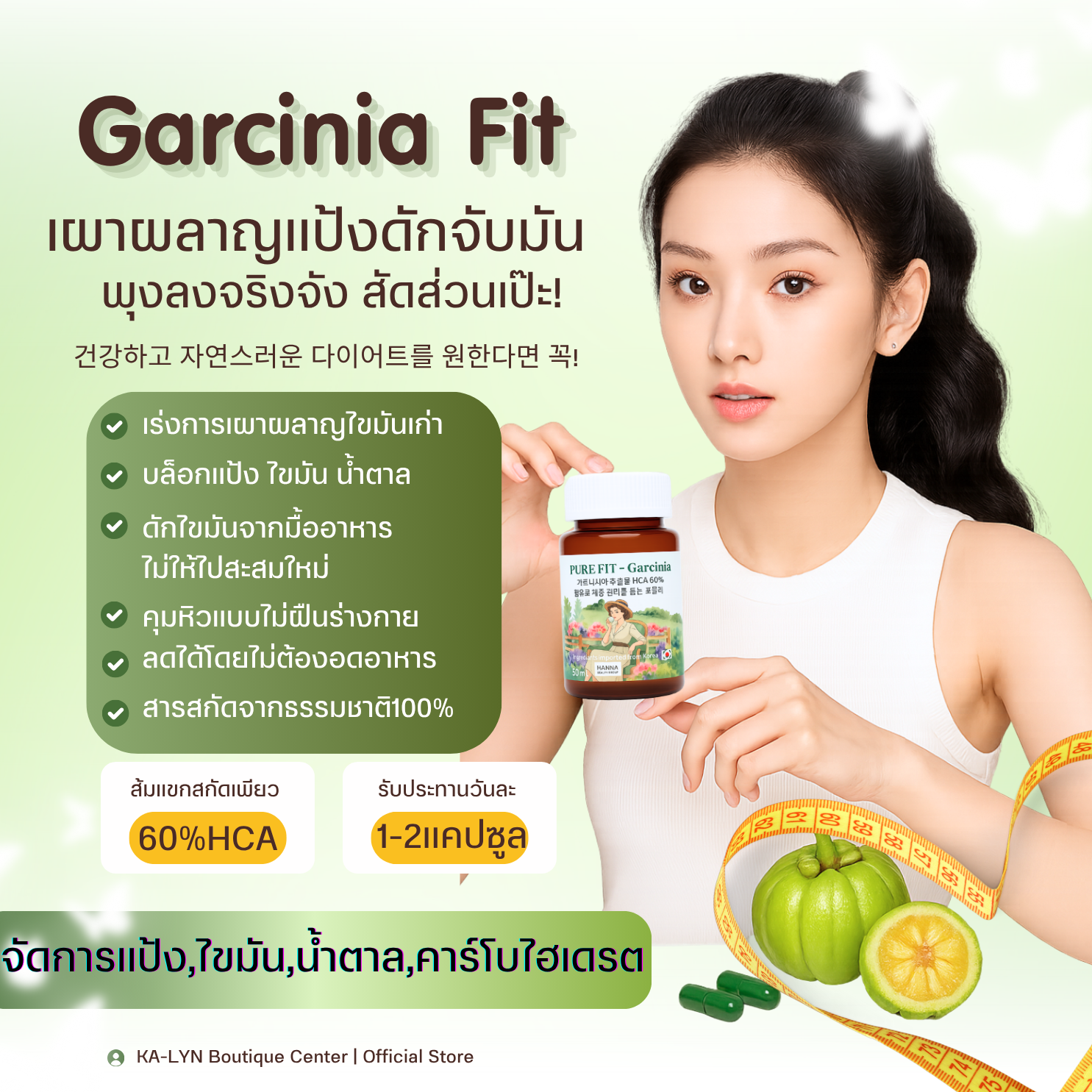 ✨ ผลิตภัณฑ์เสริมอาหารสูตรสารสกัดจาก ผลส้มแขก 60%🇰🇷
